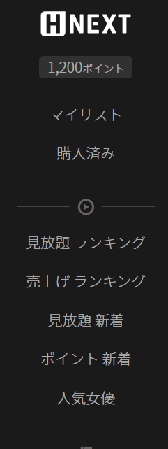 H-NEXTの左サイドバーには「見放題ランキング」や「見放題新着」など、見放題の人気作品や新着作品を簡単に一覧で見ることが出来ます。