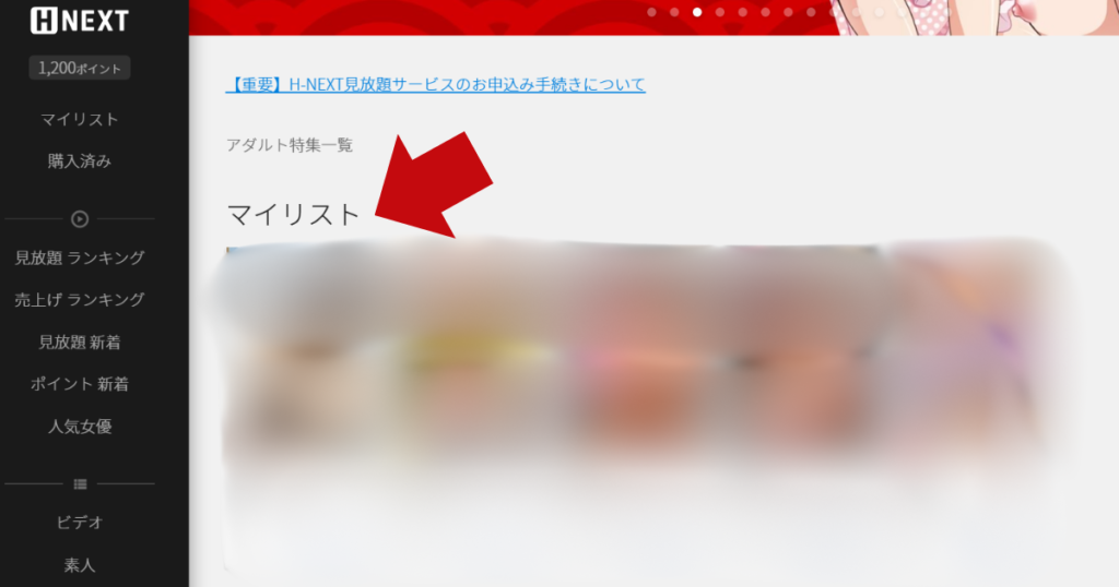 H-NEXTには「マイリスト」という機能があります。これはブックマーク機能で、お気に入りの作品やこれから見たい作品をブックマークできます。